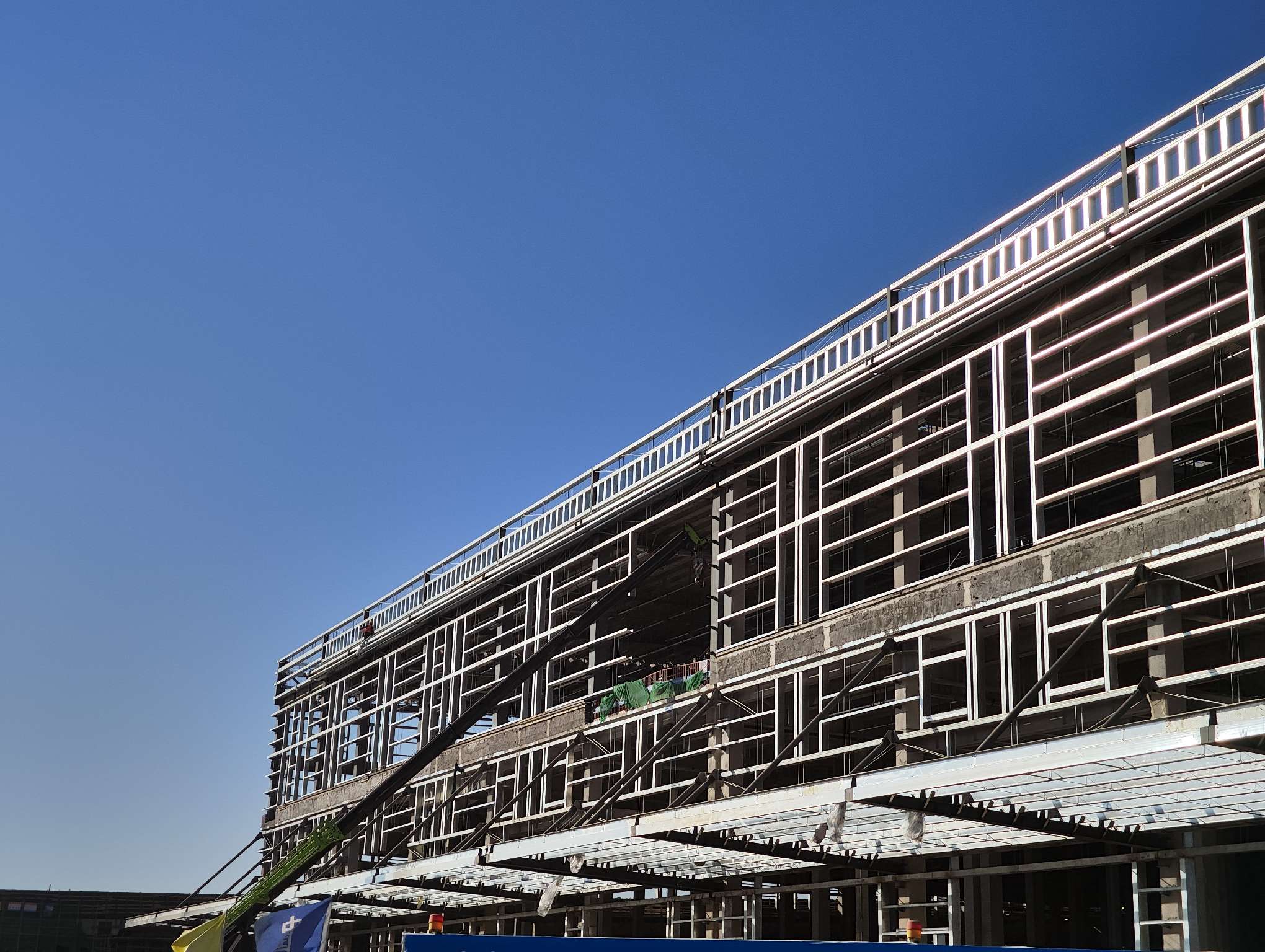 经过数月奋战,该项目已于2024年12月实现了全部钢结构封顶。截至目前,一层地面进度过半,二层楼地面已完成,已经全面进入屋面墙面围护结构及机电安装施工阶段。