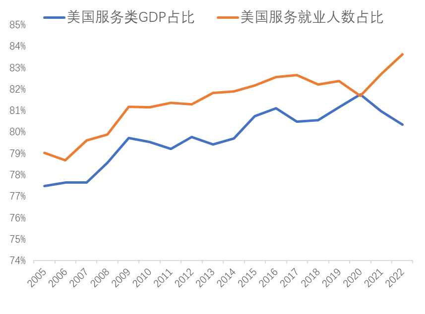 美国服务业就业人数占总就业超过80%
