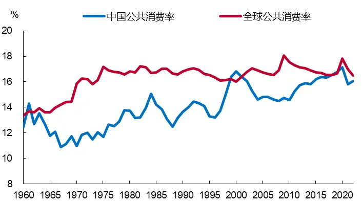 中国公共消费率长期低于全球平均水平