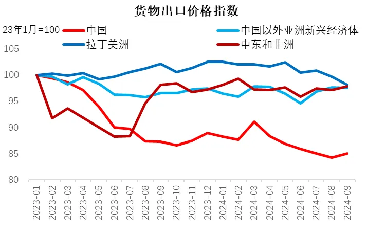 中国出口价格指数大幅弱于其它新兴经济体
