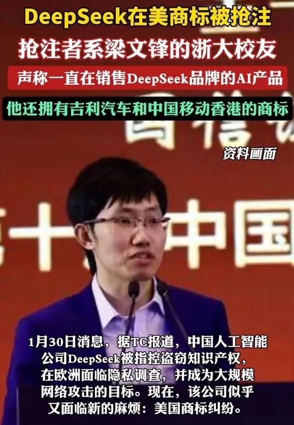DeepSeek在美商标被梁文锋校友抢注