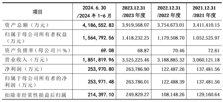 从报告期业绩来看,中策橡胶表现亮眼。2021年至2023年,公司实现营业收入分别约为306.01亿元、318.89亿元、352.52亿元,对应实现归属母公司净利润分别约为13.75亿元、12.25亿元、26.38亿元;2024年上半年,公司实现营收185.18亿元,实现归属母公司净利润25.4亿元。