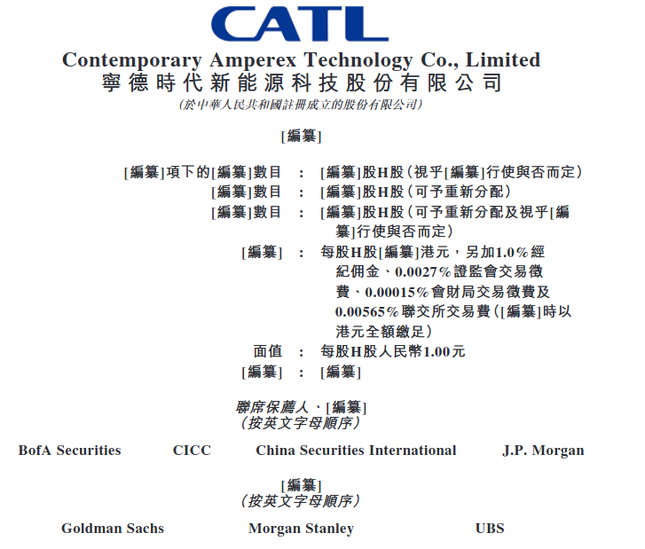 【大河财立方消息】2月11日,宁德时代新能源科技股份有限公司向港交所提交上市申请,保荐人包括美银、中金、摩根大通、高盛、瑞银等。