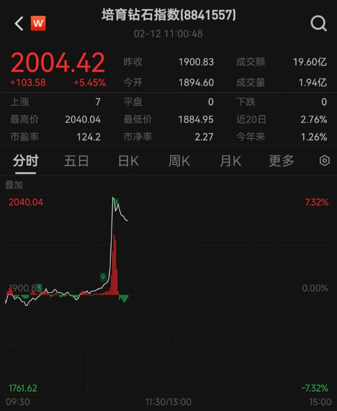 【大河财立方消息】2月12日,培育钻石板块异动拉升,多只成分股大涨。截至发稿,惠丰钻石涨13.20%,黄河旋风涨8.60%,四方达涨5.79%,力量钻石涨4.32%。