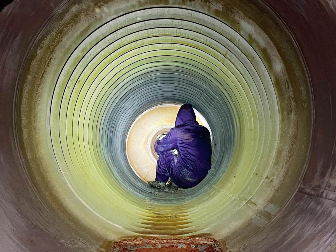 豫检集团锅检院有限公司工作人员在锅炉中进行检验工作。