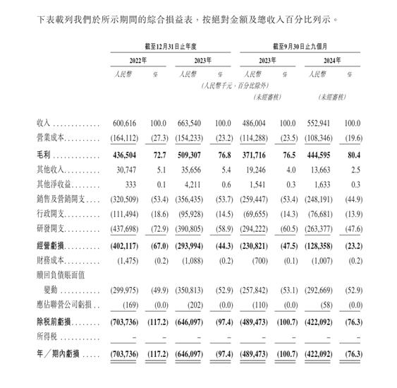 在整体业绩表现上,群核科技的营收连年稳步增长。2022年和2023年,群核科技分别实现营业收入6.01亿元、6.64亿元;2024年前9个月,群核科技实现营收5.53亿元,同比增长13.8%。2022年、2023年以及2024年前9个月,群核科技的毛利率分别为72.7%、76.8%以及80.4%。