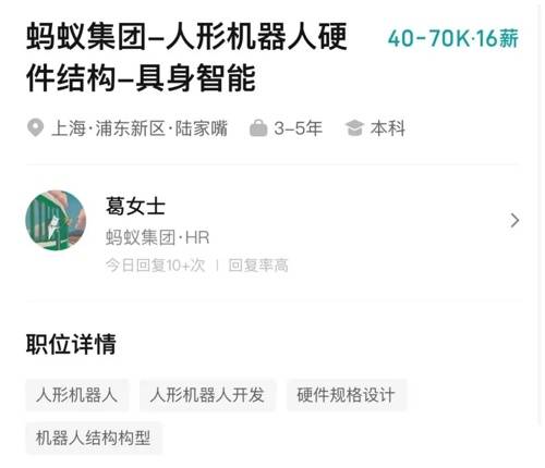 近日,某招聘平台信息显示,蚂蚁集团开放招聘具身智能人形机器人系统和应用等岗位,年薪高达百万元。