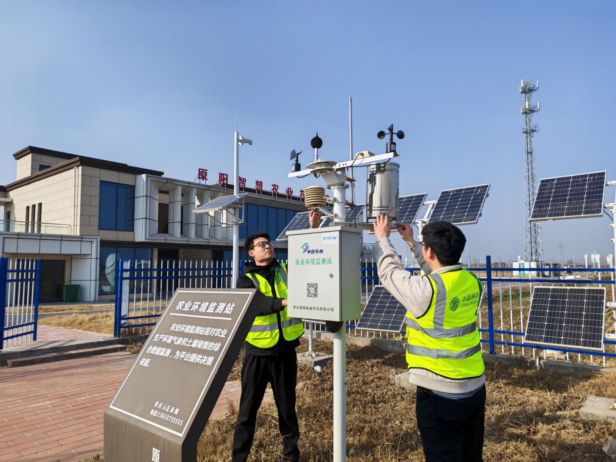 (图为河南移动新乡分公司在原阳县智慧农业控制中心调试5G农业环境监测站设备。樊晓芳/摄)