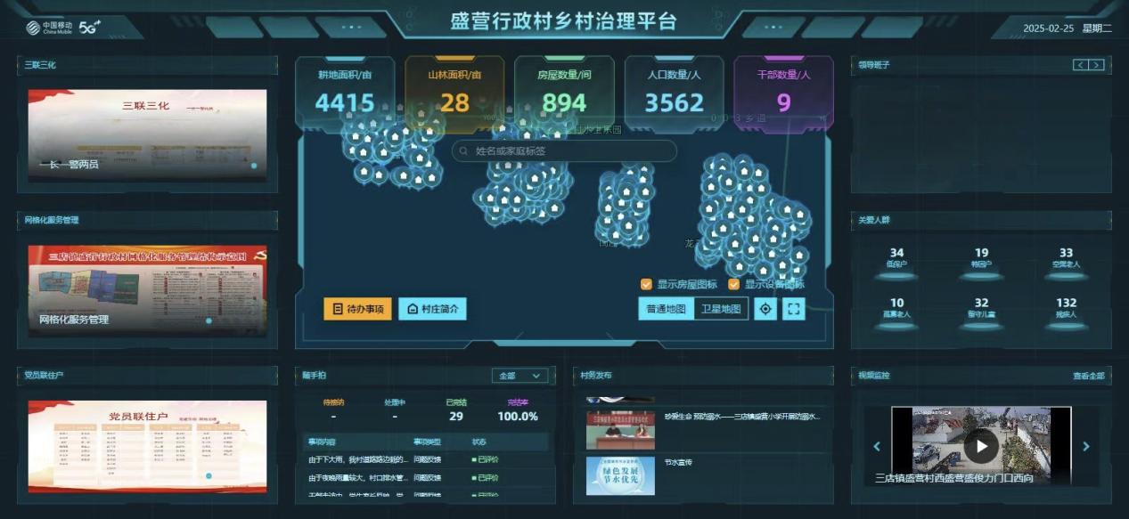 (河南移动为盛营行政村打造的乡村治理平台界面,呈现了多类数据统计与相关功能。牛方园/摄)