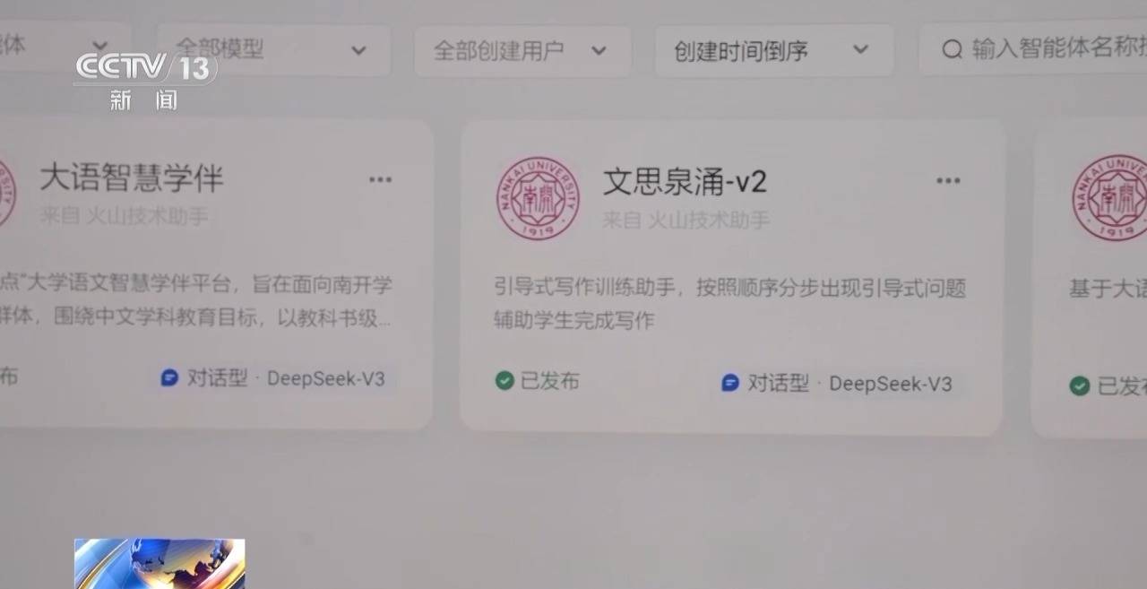 在南开大学,师生们可以在学校的智能体应用开发平台创建自己专属的AI应用。师生们自己创建的8000多个智能体,从校园活动资讯查询,再到专业科研问题的检索,无所不包。文学院的师生创建了“大语智慧学伴”的AI应用,相当于拥有了可以随身携带的语文老师。