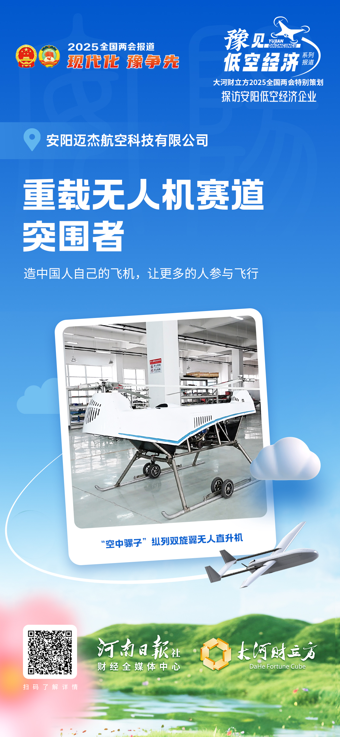 2025年全国两会期间,河南日报财经全媒体中心·大河财立方推出“豫见低空经济——探访安阳低空经济企业”系列报道,深入产业一线,聚焦企业技术攻坚的“硬支撑”,也记录创业者与科研人员的“软实力”。