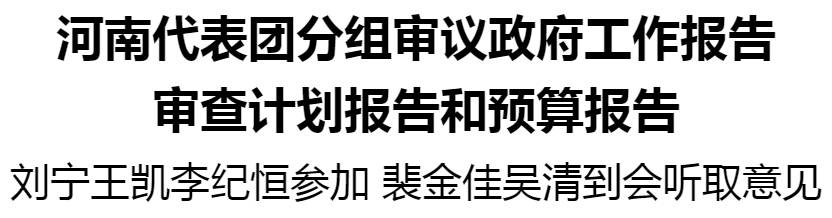3月6日,十四届全国人大三次会议河南代表团举行分组会议,审议政府工作报告,审查计划报告和预算报告。省委书记、省人大常委会主任、河南代表团团长刘宁,省长、河南代表团副团长王凯,十四届全国人大农业与农村委员会副主任委员李纪恒参加审议审查。退役军人事务部部长裴金佳、中国证监会主席吴清到会听取意见。