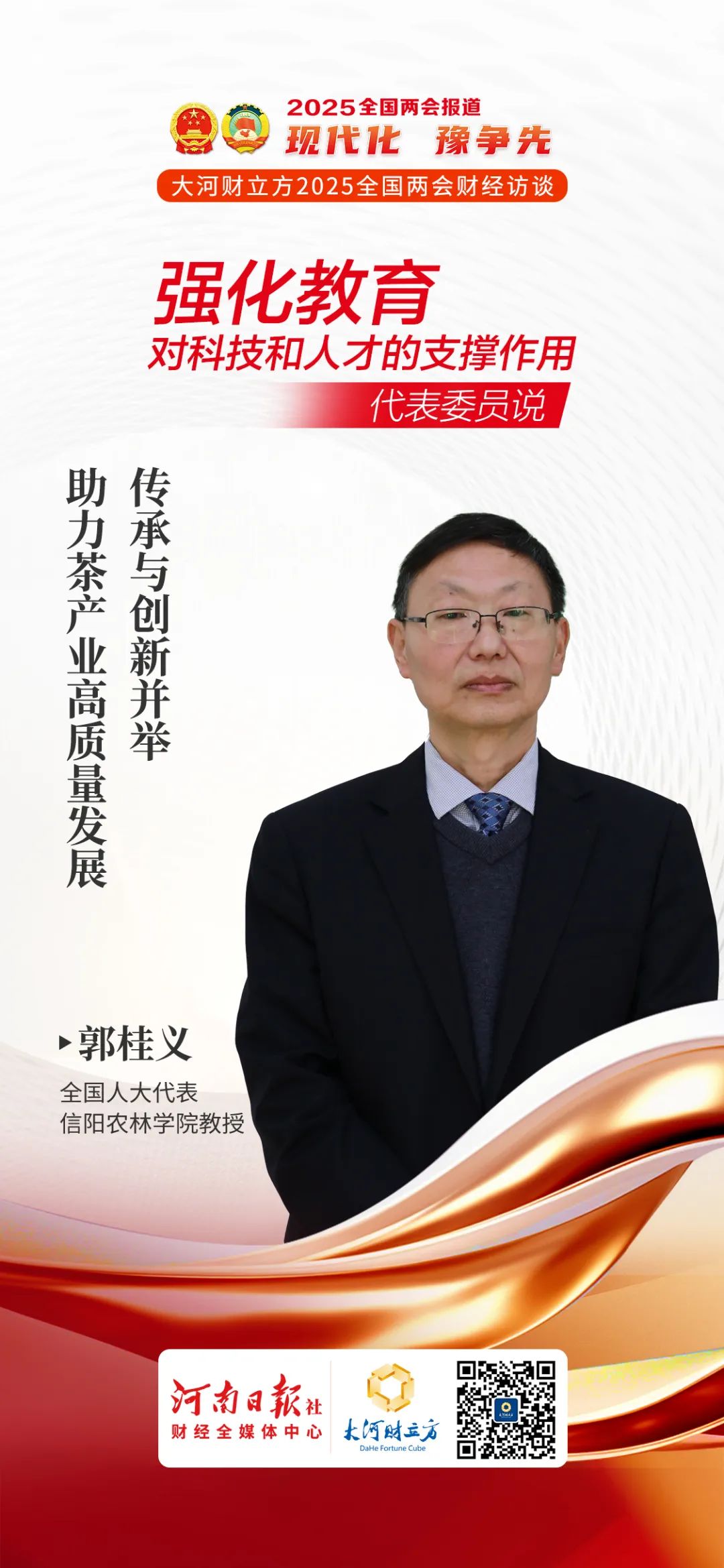 郭桂义深耕茶学科研和教育一线40多年,曾担任信阳农林学院茶学院院长,还兼任河南省茶产业科技特派员服务团团长、大别山实验室副主任等职,被学生和茶农称为“茶教授”。他认为,高素质技术技能人才是推动茶产业高质量发展的重要动力,“以赛促学”是茶学人才培养的重要途径。