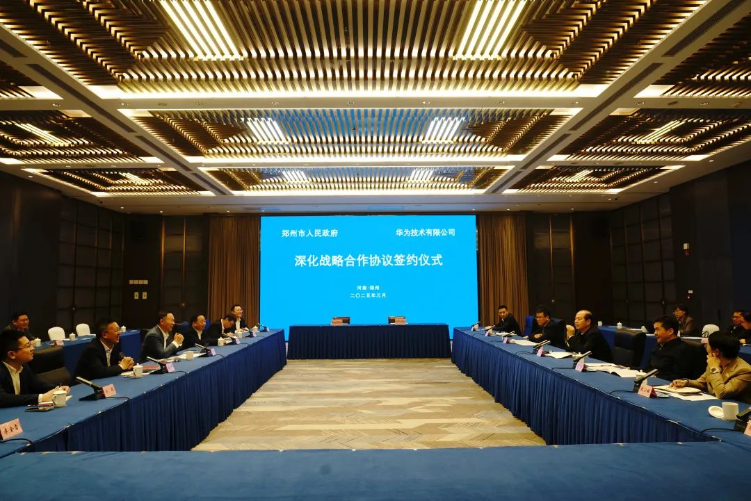 3月13日,郑州市与华为技术有限公司签署深化战略合作协议,省委常委、市委书记安伟与华为公司常务董事、ICT基础设施业务管理委员会主任汪涛会谈并见证签约。