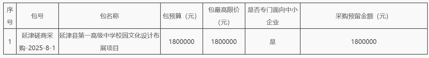 立方招采通显示,3月14日,延津县第一高级中学校园文化设计布展项目发布竞争性磋商公告,预算金额180万元,响应文件提交截止时间2025年03月27日09时。