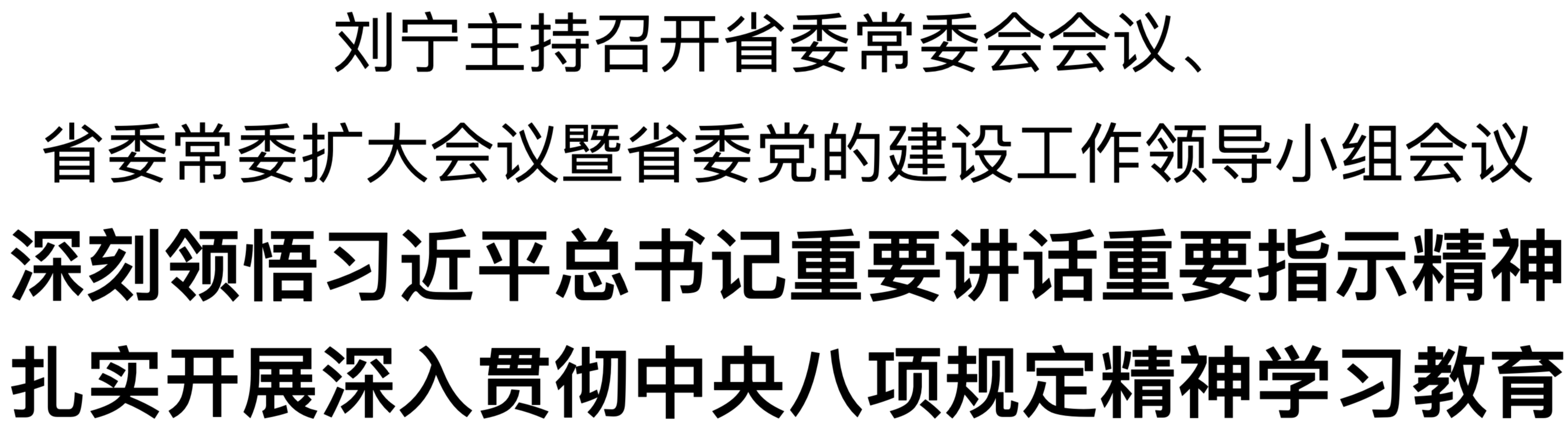 3月13日、14日,省委书记刘宁先后主持召开省委常委会会议、省委常委扩大会议暨省委党的建设工作领导小组会议,深刻领悟习近平总书记关于深入贯彻中央八项规定精神学习教育的重要讲话重要指示精神,贯彻落实中央党的建设工作领导小组会议精神,研究部署我省学习教育工作。