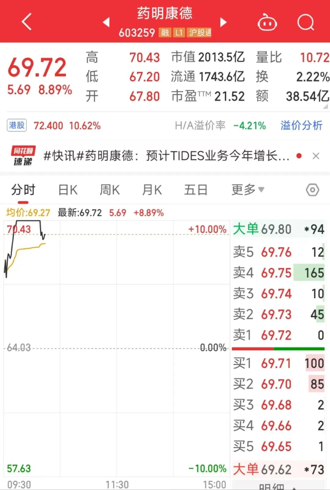 药明康德高分红,AH股齐涨