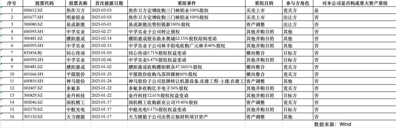 除了焦作万方外,Wind数据显示,今年年内还有多氟多、濮阳惠成、国机精工等12家上市公司开展15单并购重组事项。