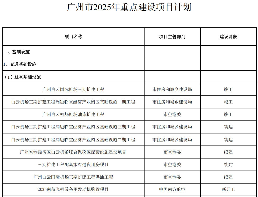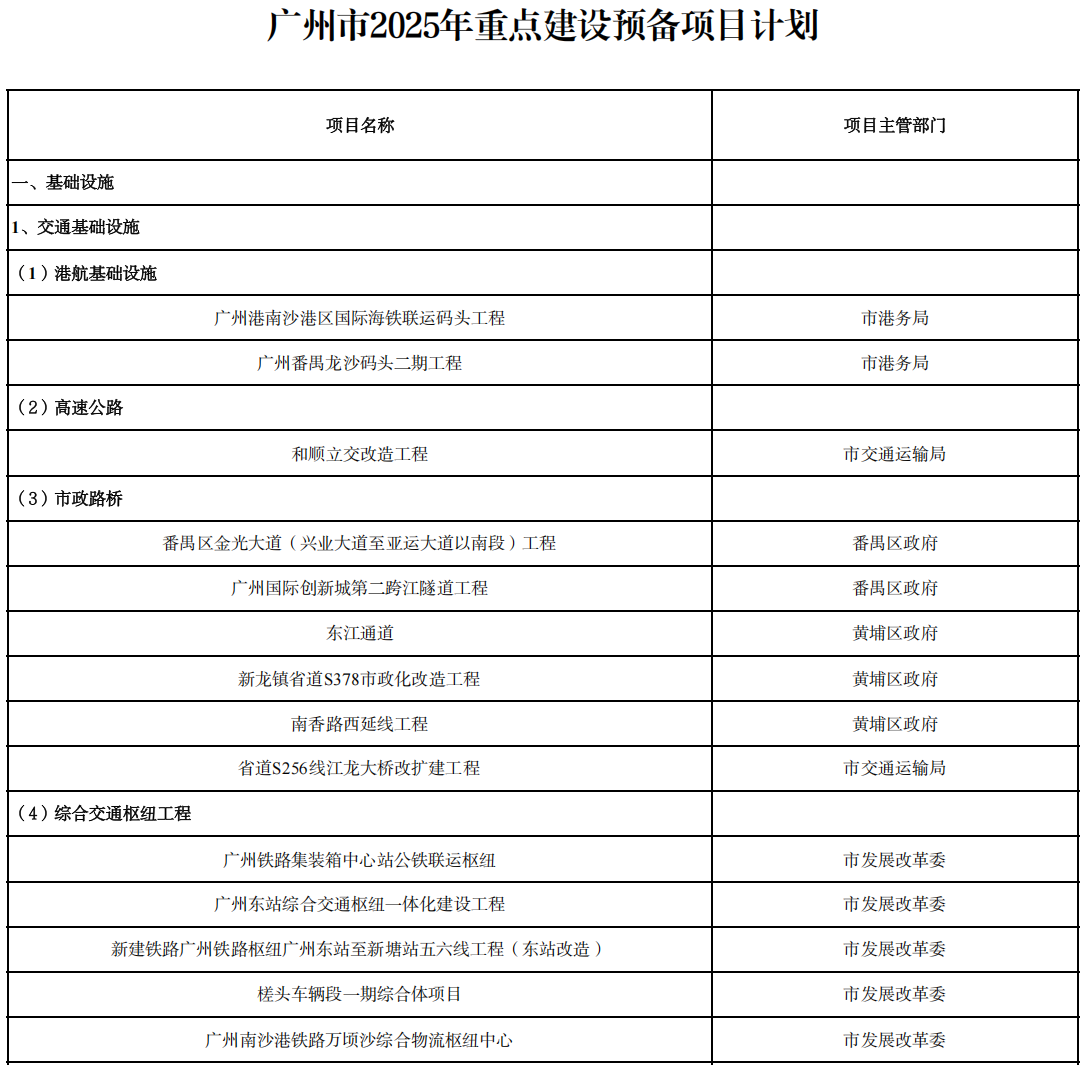 1. 广州市2025年重点建设项目计划