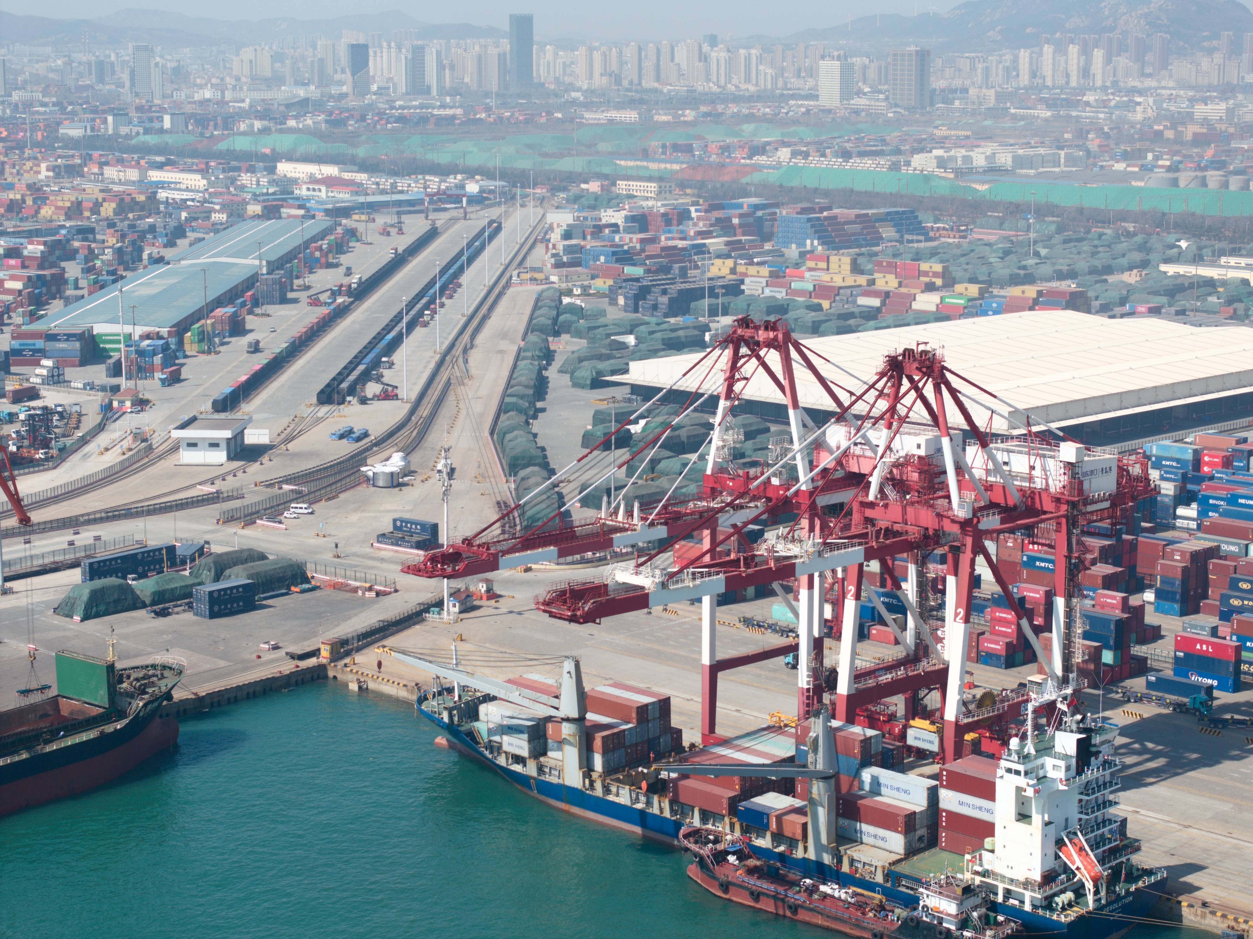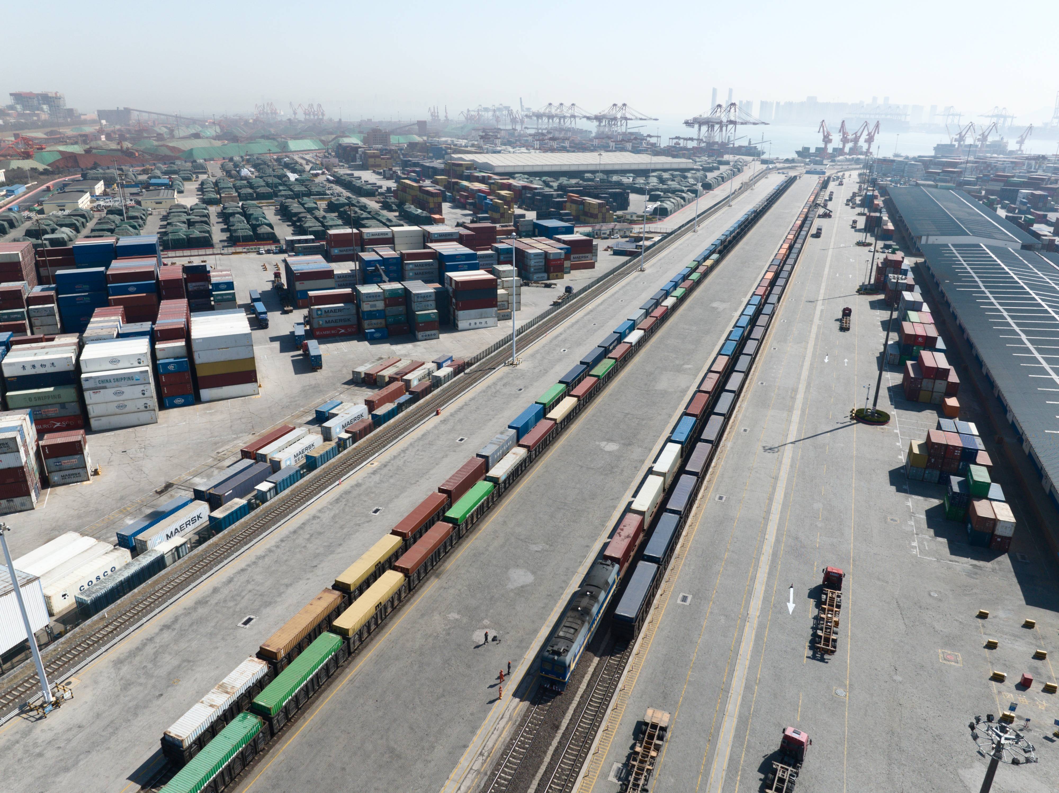 青岛港海铁联运中心业务部经理代学超指着正在作业的大型起重机械说:“这儿离码头只有200米,最快半小时就能装船,汽车配件2天后就会出现在日本横滨的汽车工厂;河南的纺织制品,将远赴西班牙销往欧洲市场。"