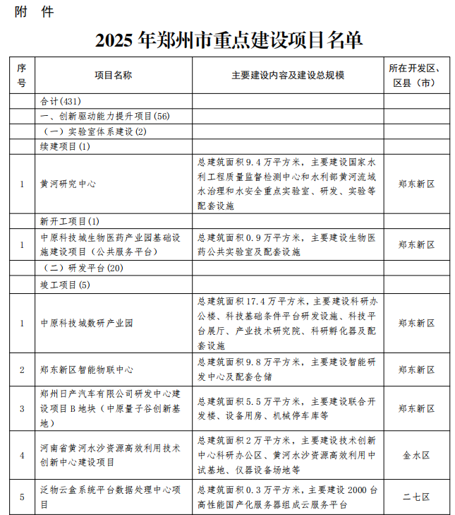 【大河财立方消息】3月27日,郑州市人民政府印发2025年郑州市重点建设项目名单的通知。