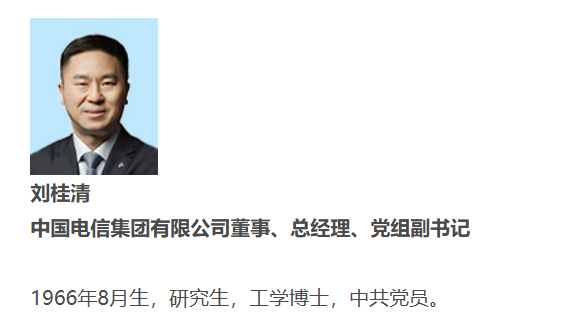 【大河财立方消息】3月31日,中国电信更新后的网站信息显示,刘桂清已任中国电信集团有限公司董事、总经理、党组副书记。