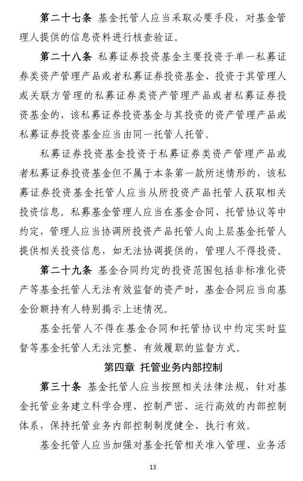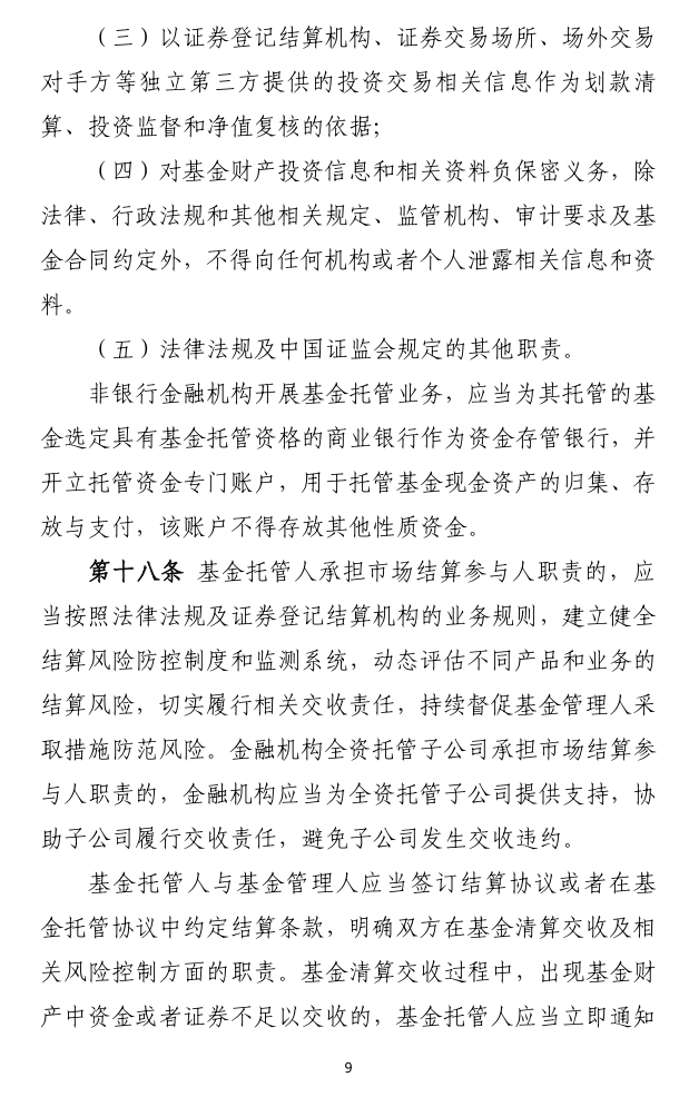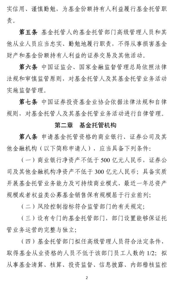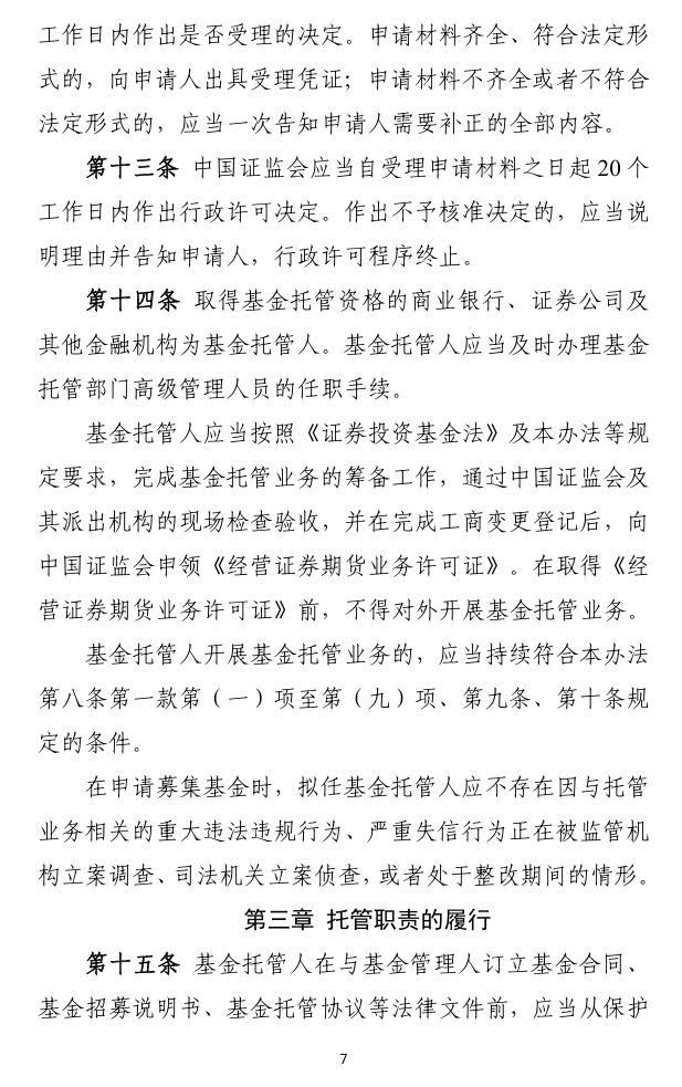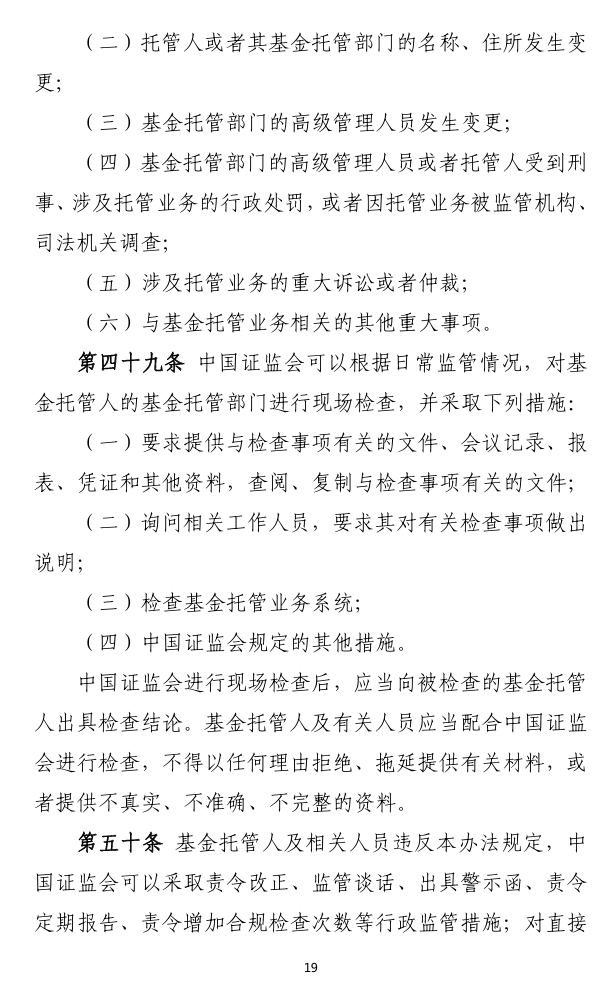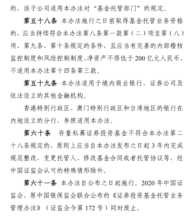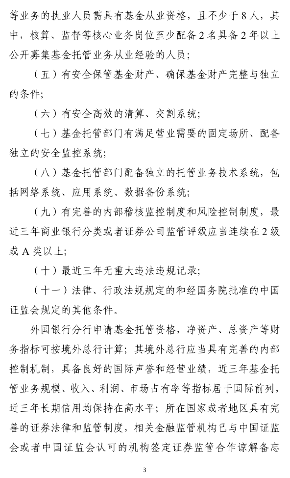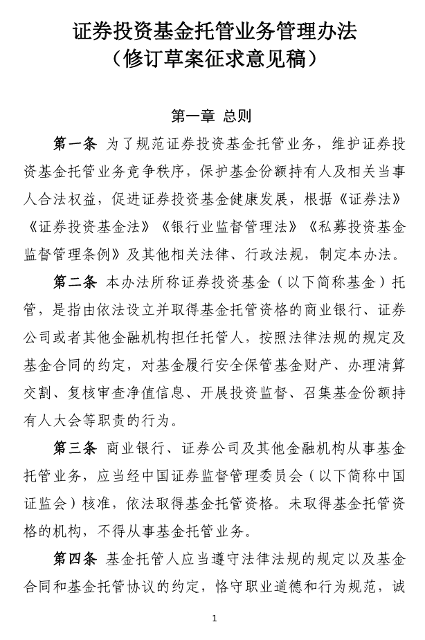 【大河财立方消息】4月3日,证监会发布通知,就《证券投资基金托管业务管理办法(修订草案征求意见稿)》公开征求意见。