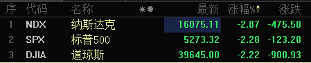 截至发稿,道指跌2.22%,纳指跌2.87%,标普500指数跌2.28%。其中,纳斯达克综合指数从历史收盘高点下跌20%,跌至16000点附近,有望进入技术性熊市。