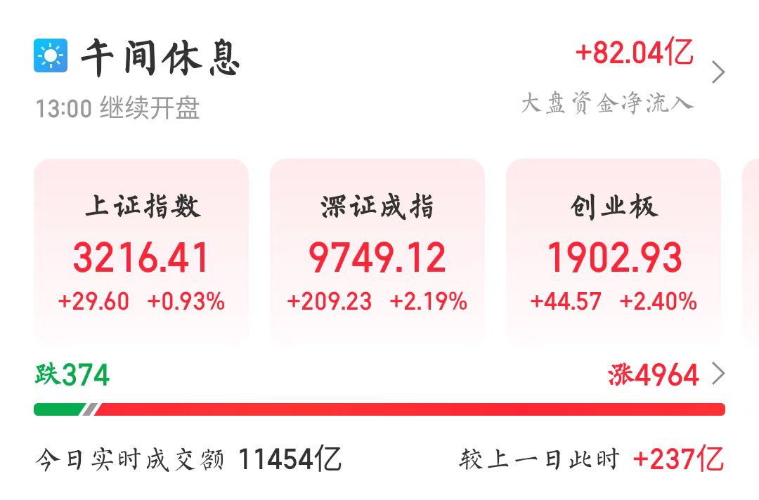 【大河财立方消息】4月10日,A股高开高走,延续反弹态势。沪指涨0.93%报3216.41点,创指、深成指半日涨超2%,北证50涨超5%,全市场近5000只个股上涨。