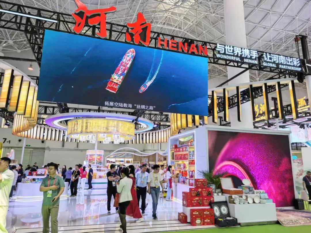 本届消博会,河南省商务厅组织了众多河南优秀文化企业及优秀项目参会参展,搭建“与世界携手,让河南出彩”展厅。在展厅内,市商务局负责同志和工作人员在展台对安阳产品和文化进行推介,使甲骨文成为河南展厅一大亮点,吸引了不少游客参观,“十二生肖传奇甲骨文与性格”等文创产品吸引了大量游客观赏、购买。
