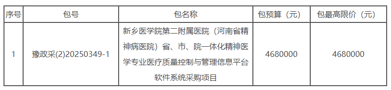 新乡医学院第二附属医院(河南省精神病医院)省、市、院一体化精神医学专业医疗质量控制与管理信息平台软件系统采购项目-公开招标公告