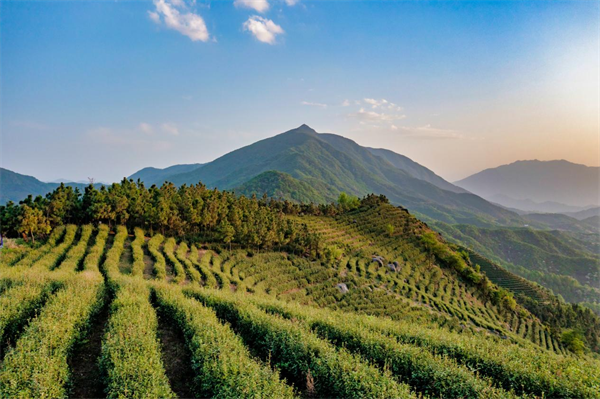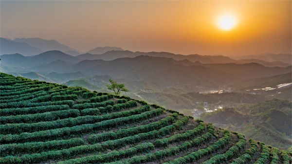 夕阳余晖中的茶山(央广网发 固始县委宣传部供图)