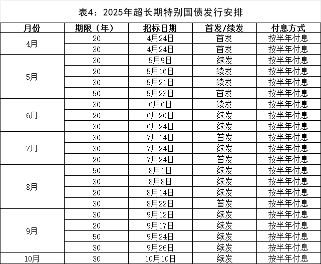 4月16日,财政部发布通知,公布2025年一般国债、超长期特别国债发行有关安排,其中,今年超长期特别国债发行自4月24日启动。
