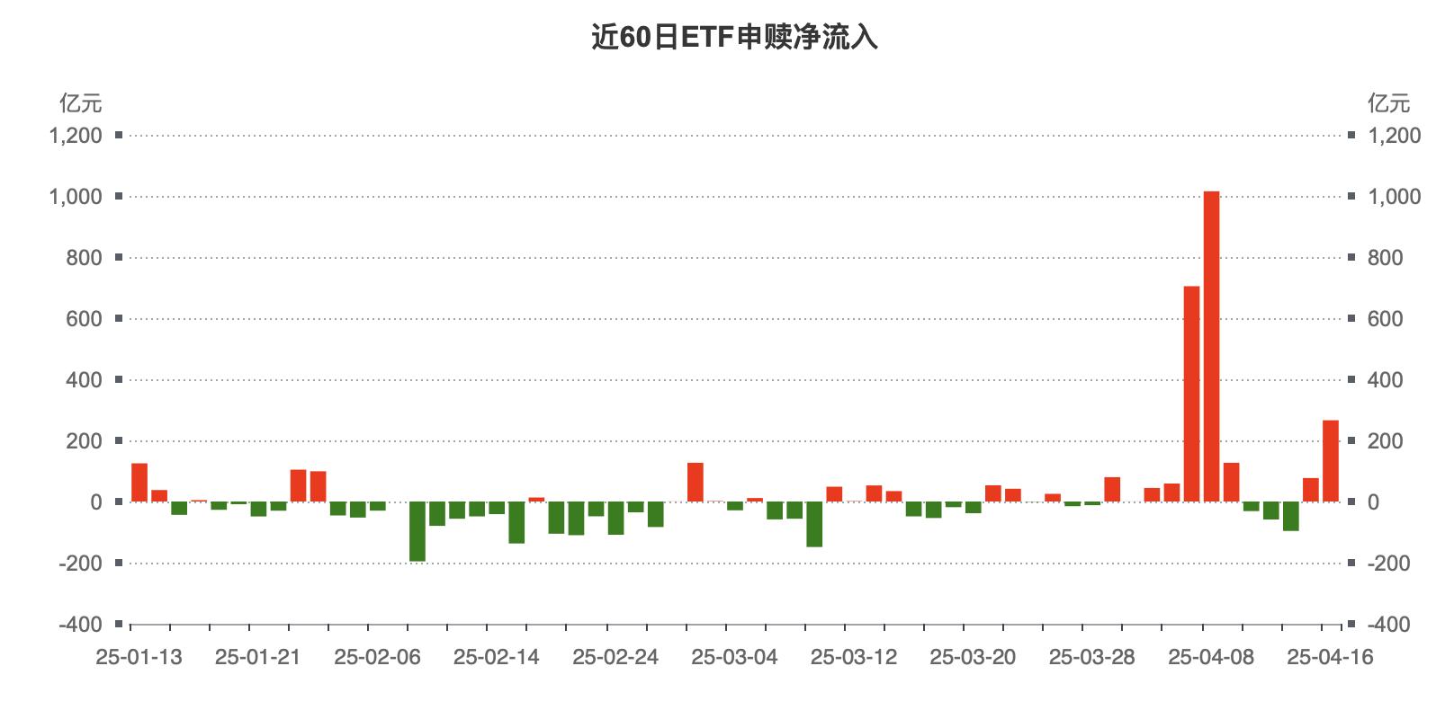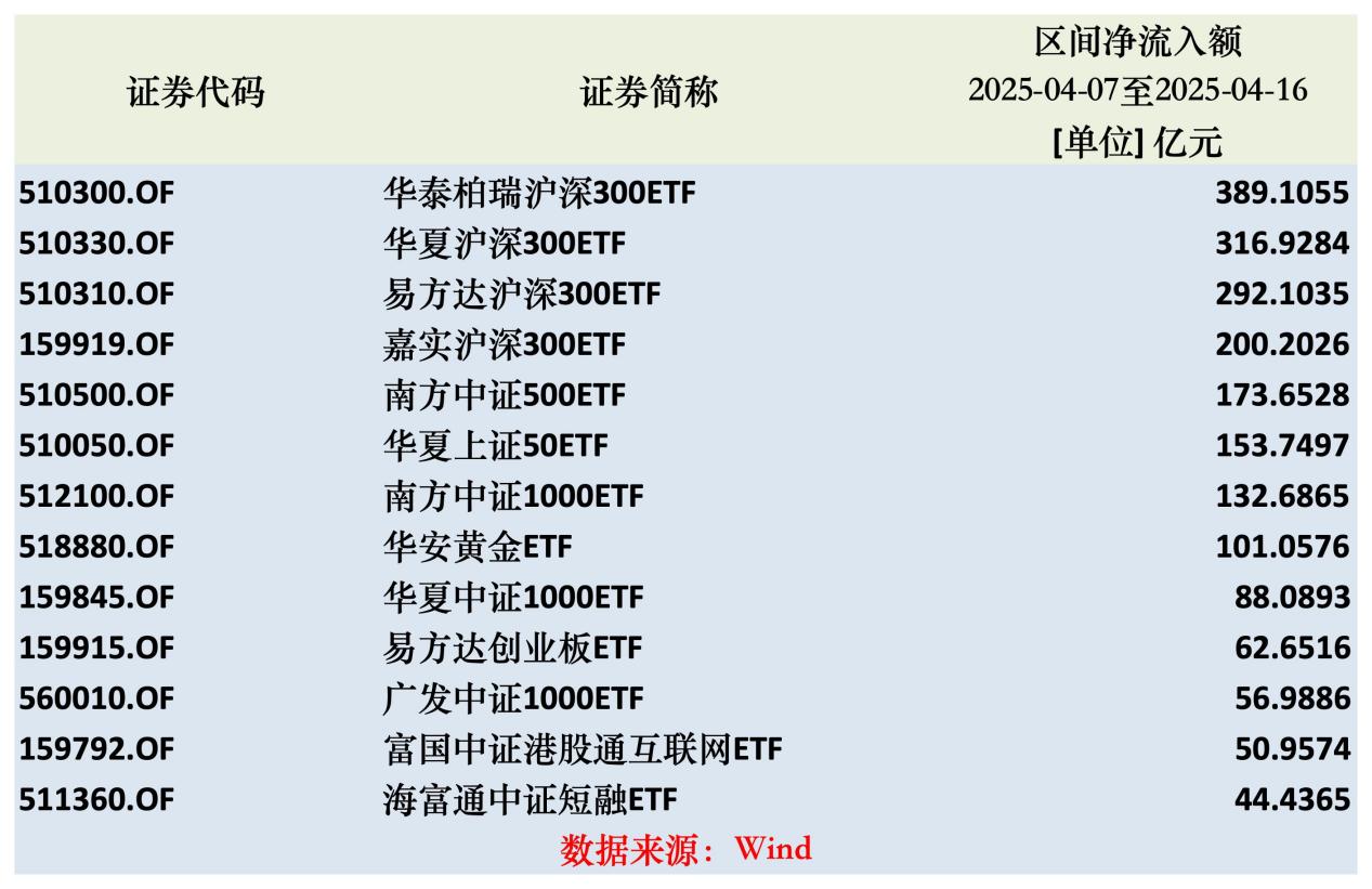 4月7日至4月16日,全市场股票型ETF净流入额超过2000亿元,其中4月8日单日净流入额超过1000亿元