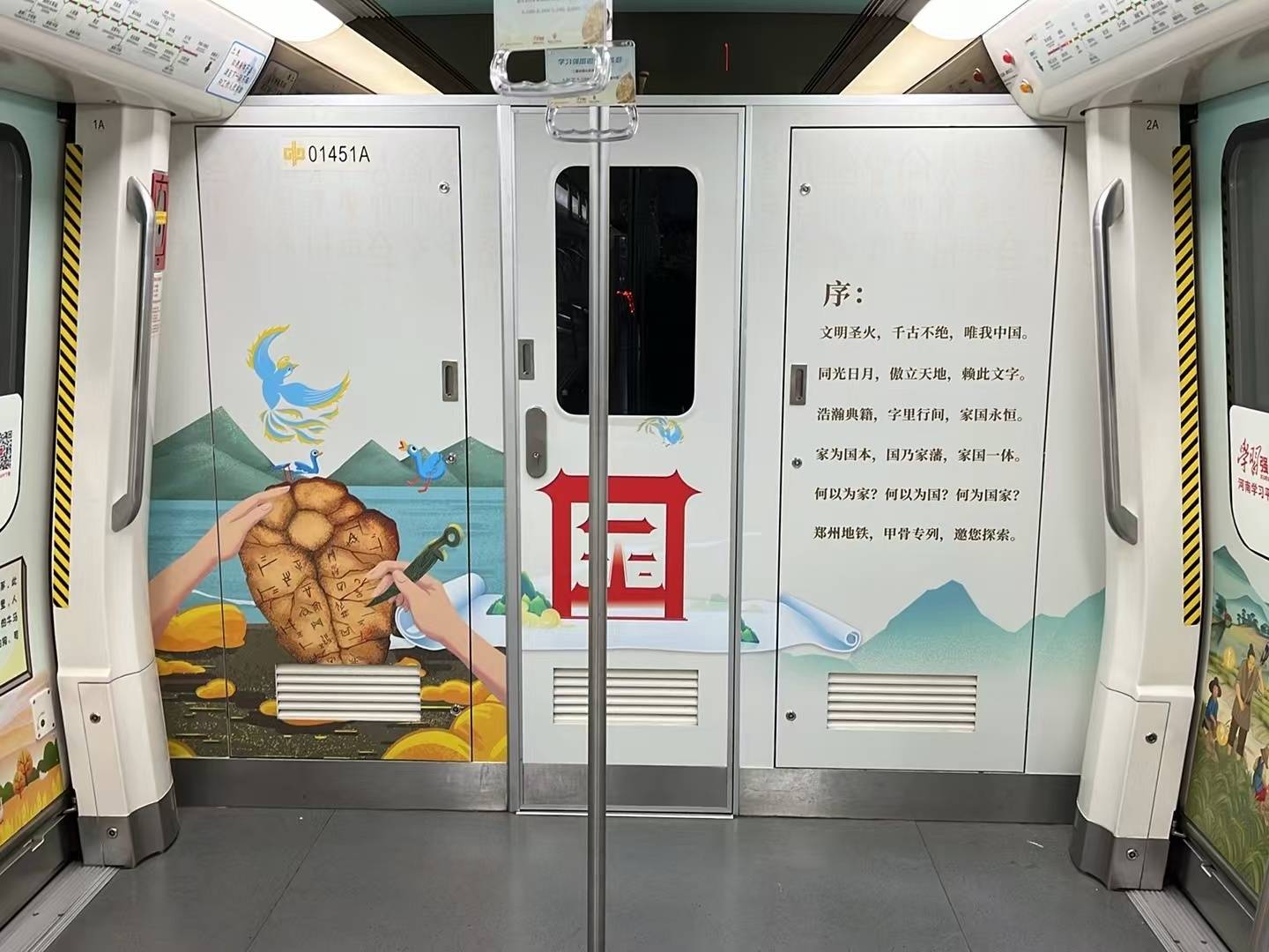 精彩快闪,乘着地铁邂逅书香!本次活动通过“图书漂流+快闪剧场+文化专列”的复合模式,将地铁空间转化为知识共享平台。搭乘1号线乘客朋友有机会偶遇甲骨文专列,车厢内布置了朗诵经典段落、表演简短戏剧片段,地铁列车穿越千年历史,将“移动的博物馆”送到郑州市民身边,畅享书香之旅。
