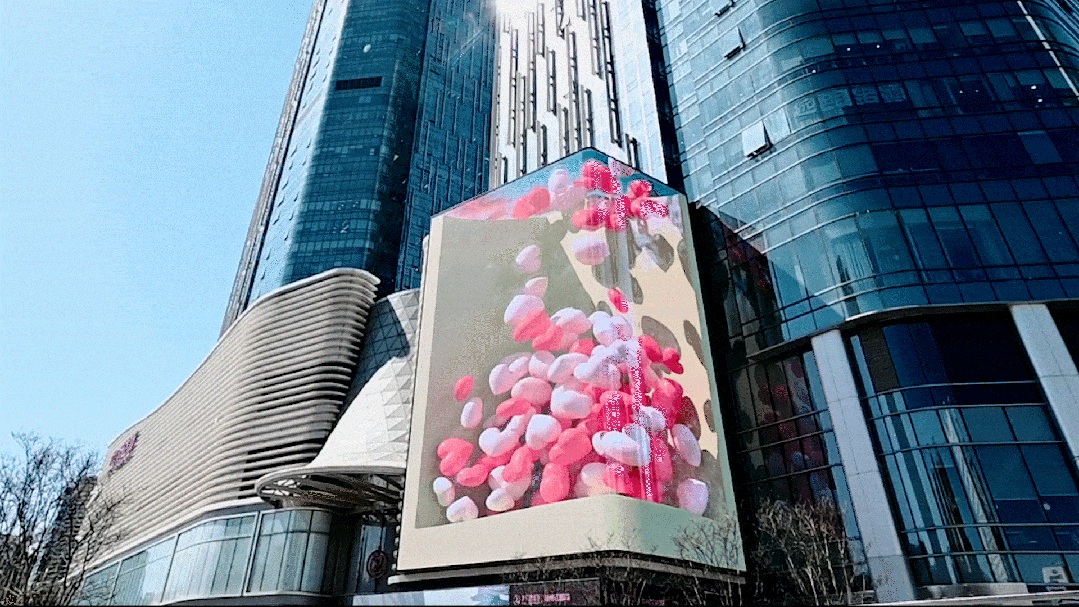 “光影双幕”的魅力不只是“大”。让路人停步相视的真正玄机是它独特的L型外观,曲面屏幕的转角拼接加上全新虚拟三维处理技术,给观众带来360°的沉浸式视觉体验。