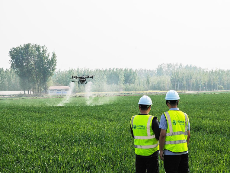 同时,在原阳县官厂乡柳园村的300余亩农田中,两架在移动5G物联网赋能下的无人机正在来回飞行喷洒药剂,其精准地实现着自动灌药与自动喷洒,通过在工作平台上提前规划飞行路线,确保喷洒范围均匀覆盖所有植株,避免了漏喷重喷现象,每年至少节省90%的水和50%农药,大大提升了作业效率。