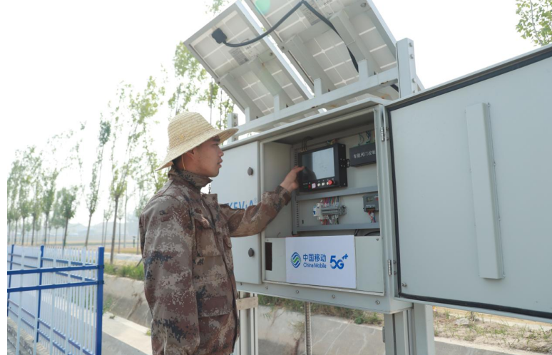 “5G智慧灌溉系统非常省事,设备可以自动测量稻田水位高低,科学调配引黄水量,按钮一点一分钟之内水位就起来了,灌溉情况显示屏上都能看得到,节省了人工,也节约了水源。”种粮大户吴祖进边操作边说。