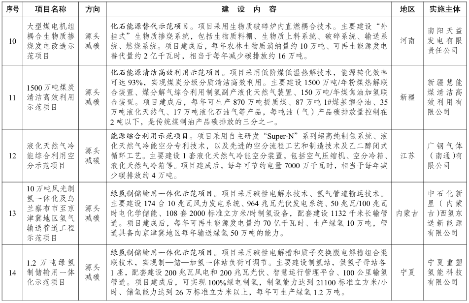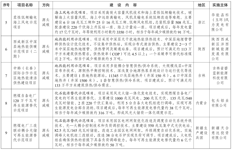 附绿色低碳先进技术示范项目清单(部分):