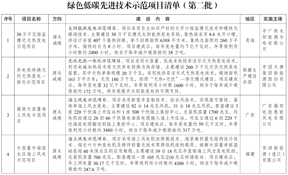 【大河财立方消息】4月28日,国家发展改革委办公厅印发《绿色低碳先进技术示范项目清单(第二批)》的通知。