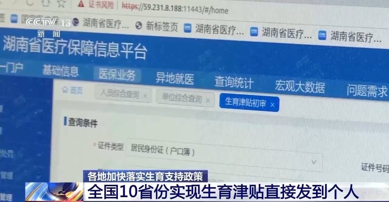 国家医保局消息,截至目前,全国已有内蒙古、黑龙江、上海等10个省份全面实现了生育津贴直接发放到个人。