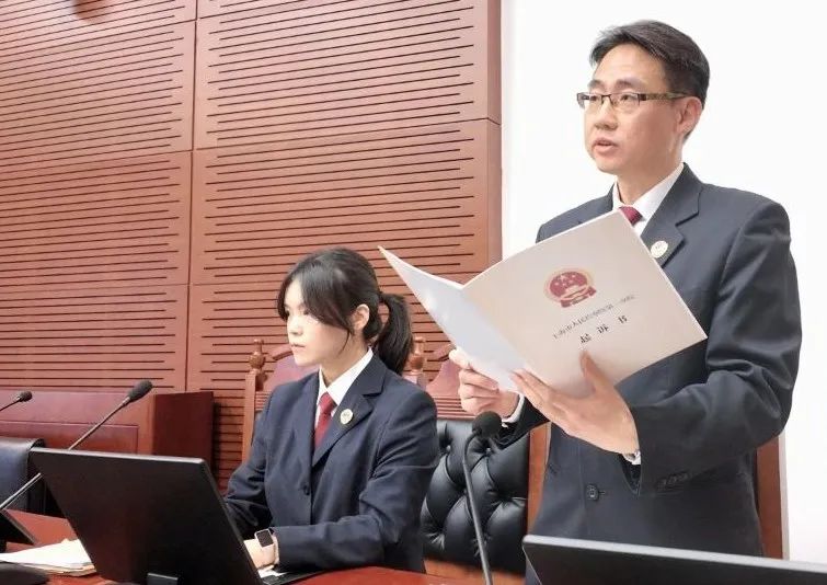 办案检察官孙惟文(右)一审出庭支持公诉。