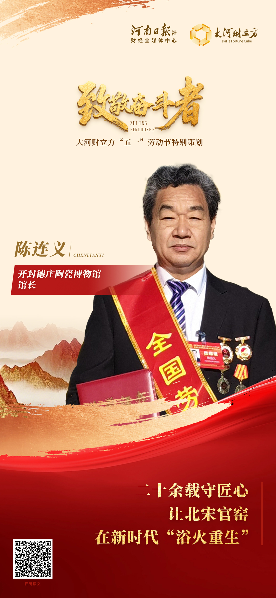 【大河财立方 见习记者 李雯雯】在庆祝中华全国总工会成立100周年暨全国劳动模范和先进工作者表彰大会上,开封市德庄陶瓷博物馆馆长、开封文化艺术职业学院教授陈连义获得“全国劳动模范”称号。谈及这份荣誉,他坦言:“做任何事情,只要你喜欢,再累、再苦也是幸福的、快乐的。”陈连义对大河财立方记者表示,这份荣誉不仅是对其过往努力的认可,更是新征程的起点。未来,他将继续以“不负韶华、不负官窑”为信念,在北宋官窑传承与创新之路上深耕不辍,以实际行动践行匠人初心。