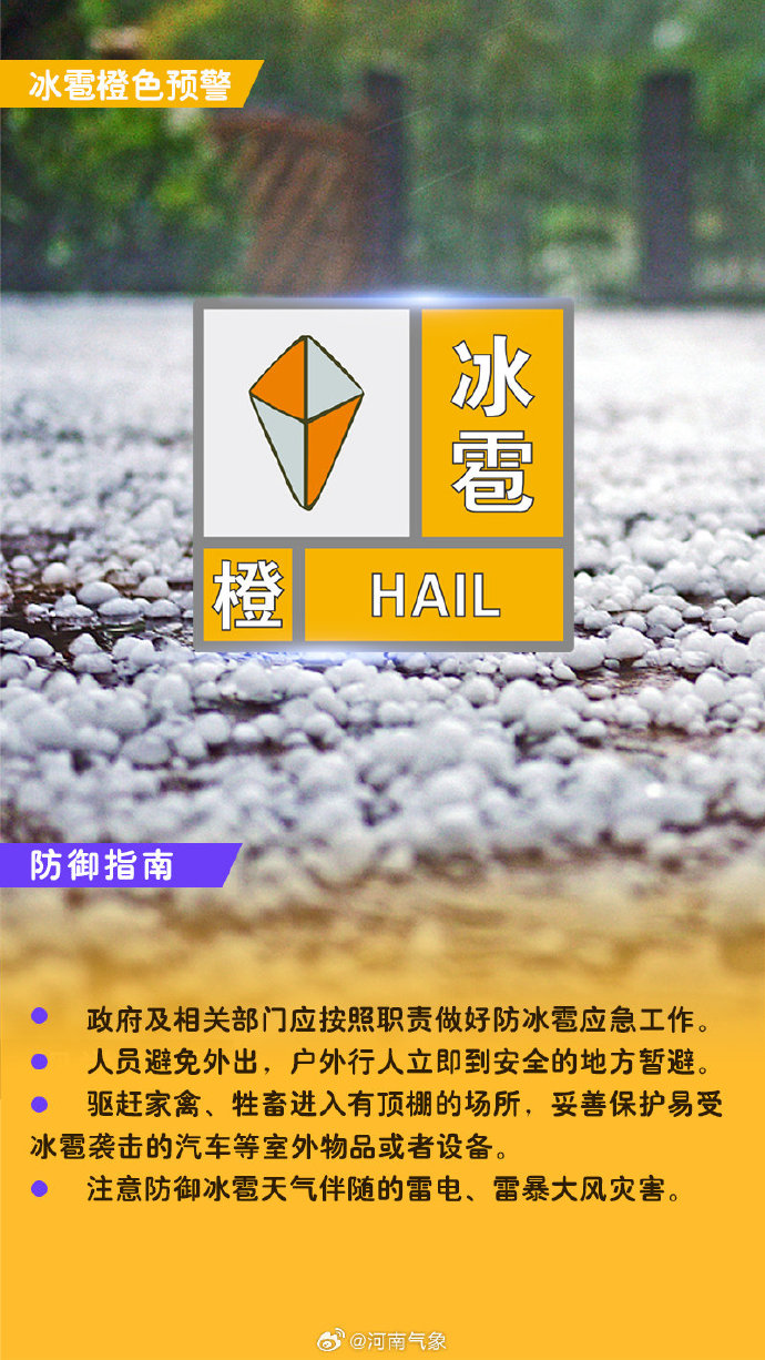 【大河财立方消息】郑州市气象台2025年5月2日20时00分发布冰雹橙色预警信号:郑州市西部巩义,荥阳部分乡镇已出现冰雹天气。预计未来3小时内,郑州市主城区南部、航空港区所辖乡镇及街道可能出现冰雹天气。请注意防范冰雹天气带来的不利影响。