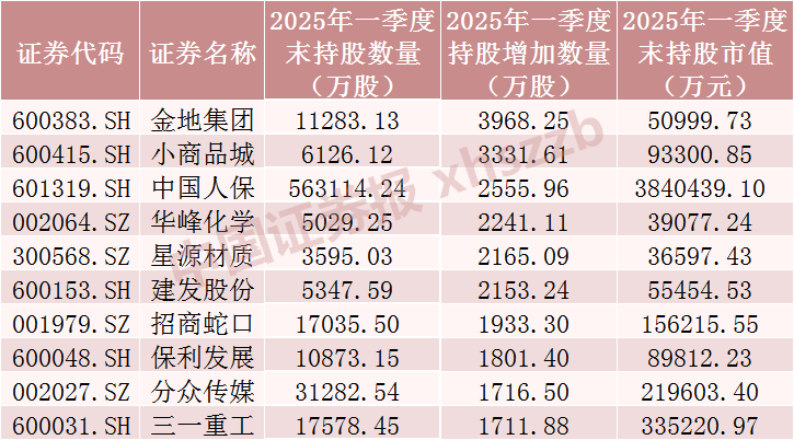 一季度,社保基金对151只股票持股数量增加。具体来看,持股数量增加量居首的金地集团获社保基金加仓3968.25万股;小商品城、中国人保分别获社保基金加仓3331.61万股、2555.96万股。