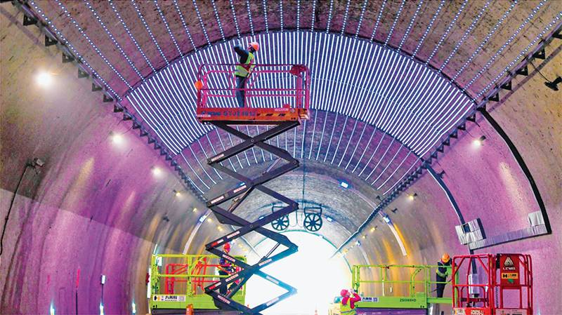 我国投资潜力和空间依然巨大,今年政府投资规模继续扩大。图为2025年4月21日,江西省新余市智慧绕城建设工程国道G533仰天岗隧道段,工人正在安装智慧交通设施。 人民图片 赵春亮/摄