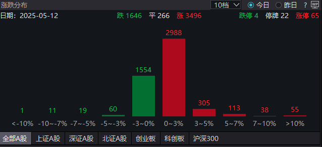 今日早盘,个股呈现普涨状态,全市场将近3500只个股上涨,其中,上涨超3%的个股超过500只。