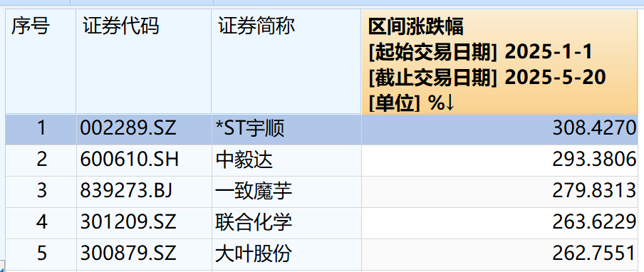 据Wind数据,在5月21日停牌前,*ST宇顺今年已累计上涨308.43%,是当时A股今年的涨幅王。