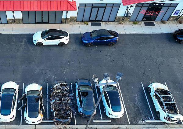 △3月,拉斯维加斯,特斯拉服务中心内车辆被焚烧
