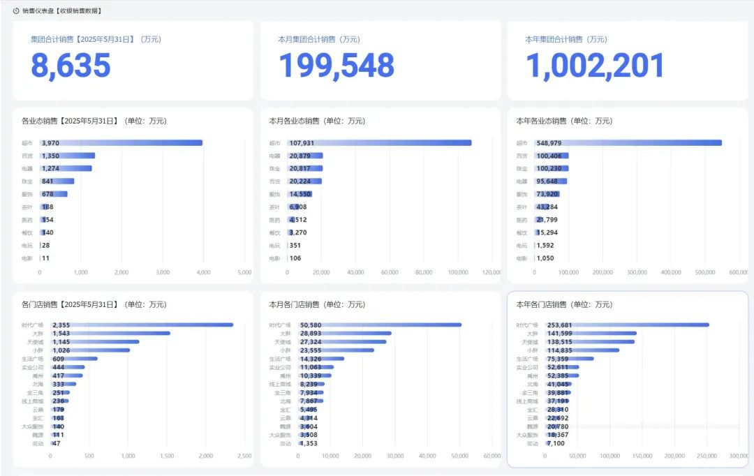 不妨做个对比,于东来公布的胖东来2024年销售规模约169.64亿元。这相当于,该公司在上年日均营收约4656万元。5月31日,胖东来在飞书仪表盘显示的销售业绩为100.22亿元,前五个月总计151天,相当于日均营收6637万元。需要说明的是,胖东来在前五个月并无新店开业,它的日均销售额较上年同比增长约42.55%。胖东来对老店控盘持续高增长的能力,在国内实体零售业令人咋舌。